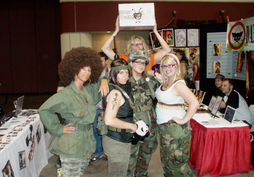The remainder of the long afternoon was well spent on costume ogling, huckster avoiding, and nerd envy. The FX show is only my second taste of the convention experience, and outside of a serious halitosis outbreak (a few of the vendors wisely pushed free mints at their tables) and a few grumbly words from Frakes, I think I’m hooked. Where else can a wannabe geek get his fill of vintage AT-AT toys and spy an all-female tribute to “Tropic Thunder?”