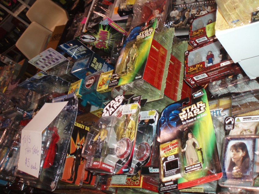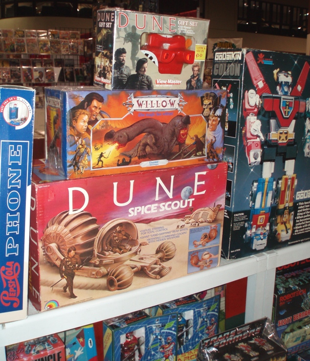 The rest of the convention featured a familiar hodgepodge of talented artists trying to sell their drawings and comics (most featuring bosomy women doing bosomy things), costumers offering elaborate fantasy wear, and toy salesmen presenting a time machine of playthings that I had trouble keeping away from. With the “Kids of the ‘80s” movement now slowing down to a crawl, the FX gathering maintained a glimmer of hope that interest is still alive for obscure items such as “Dune” toys and gun replicas from “V.” Not surprisingly, colorful “Star Wars” merchandise still grabs the largest amount of shelf space (truly the best collection of toy lines around), but renewed interest in “G.I. Joe” was felt throughout the various booths, along with an appropriate fixation on the new “Star Trek” picture. The fanboy goods were just amazing to behold, encouraging a desire for my carefree youth again and/or piles of money to spend freely on absolute crap. Because everyone needs a “Dune” spice mining toy, right?