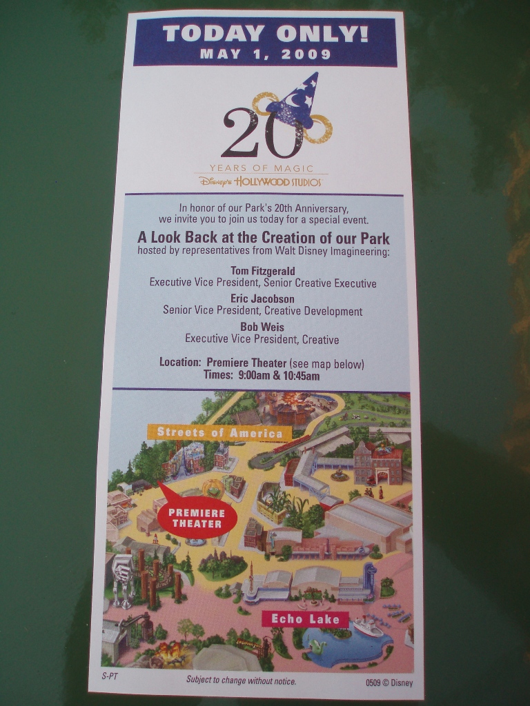 While Disney has always shown tremendous hesitation when it comes to lavishing anything that isn’t a castle park with a lively celebratory effort, it was a delight to observe the corporation at least make a token pass to say hey to the landmark DHS anniversary. While only featuring one blockbuster event and a smattering of gear and goods for purchase, the birthday feeling still filled the air bright and early this morning, as a horde of Disney Geeks gathered to reminisce about the park and its place in the often confusing Walt Disney World scheme of things.