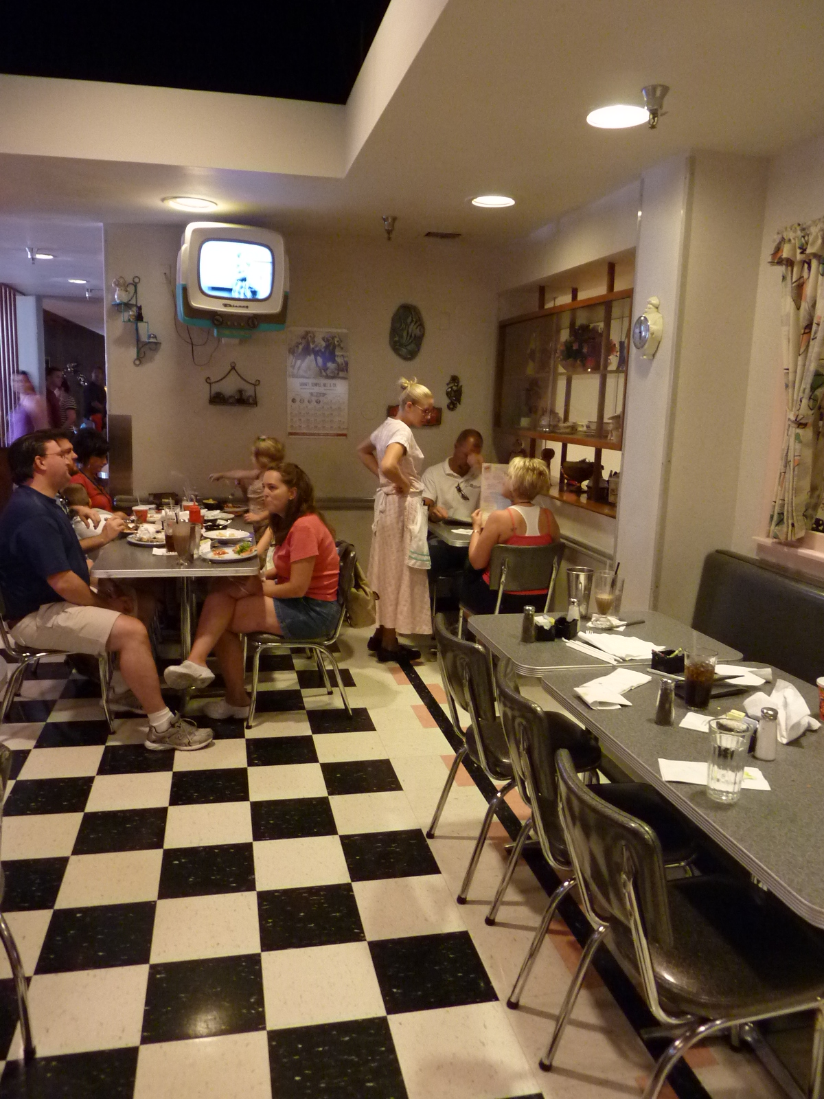 Seated, tersely instructed, and allowed a moment to scope out the televised loop of ‘50’s sitcoms and Disney-edited montages, it’s now time to order.