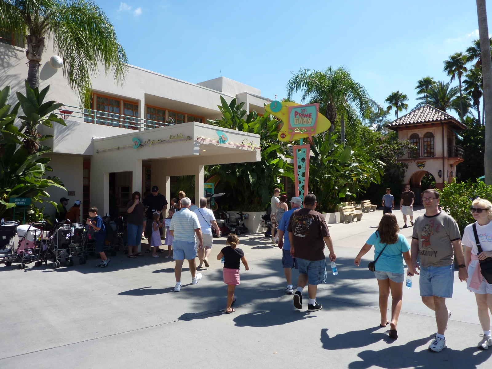 The Café is a marvelous example of Disney theming, going above and beyond the park eatery routine to give the guest a startlingly immersive experience, albeit one of extreme tension at times. It’s an unforgettable establishment, though not solely for food. For those who like to extend the theme park submersion, this is a required stop for refueling. Taking the guest back to the primary colored world of the Eisenhower era, the 50’s Prime Time Café is a singular experience unmatched in the area of “foodtainment.”