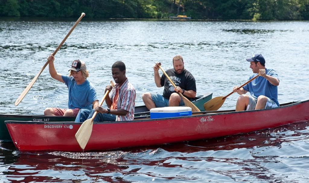 Friends since 1978 when they won a basketball championship together, Lenny (Adam Sandler), Eric (Kevin James), Kurt (Chris Rock), Marcus (David Spade), and Rob (Rob Schneider) have gone their separate ways during the march into adulthood, finding various degrees of success. Now faced with the death of their beloved coach (Blake Clark), the gang has reunited for a weekend of remembrance at a lake resort they loved as kids. Taking the wives (including Salma Hayek, Maria Bello, and Maya Rudolph) and dragging the kids away from their video games, the guys set out to make the weekend a blast like the good old days, while the outside world keeps reminding them that not much has changed.