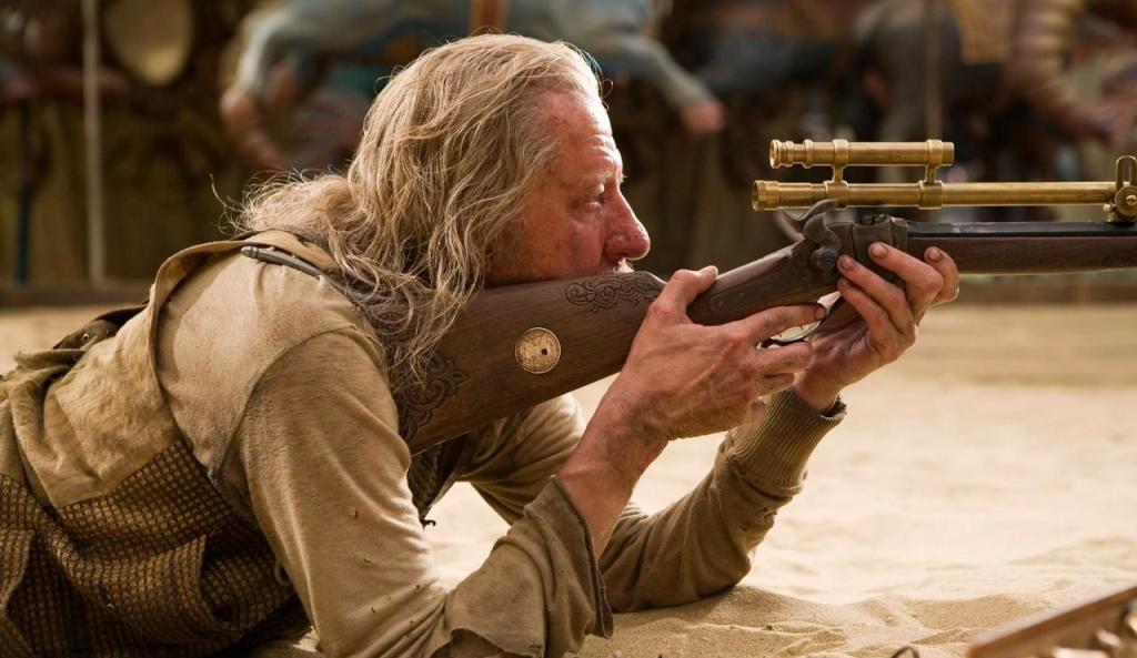 The positive here is Jang, who cuts quite a figure as the traveling samurai of few words. The image of this threatening man lugging along an outrageously adorable baby is good for a few smiles, and Jang holds his own during the combat scenes. His orders are to keep his hair conditioned and look ominous, and thankfully he’s magnificent in both departments. As for Rush, he wanders through the film looking justifiably confused, while Bosworth leans for an Annie Oakley-style twang to the sidekick role, understandably itching to stand out in the computer glaze.