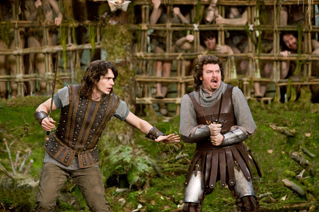Deep inside a peaceful kingdom, two brothers couldn’t be more different, with Fabious (James Franco) a handsome, heroic prince, and Thadeous (Danny McBride) a lazy slob. On his wedding day, Fabious finds his bride, Belladonna (Zooey Deschanel, here with nothing much to do), stolen by the powerful warlock Leezar (Justin Theroux), who takes his prize to his castle, looking to impregnate her and fulfill a wicked prophesy. Setting off to save her, Fabious drags along his reluctant brother, hoping the quest will bond them in honor. Soon joined by warrior Isabel (Natalie Portman), the gang encounters a series of fantastical creatures, vicious enemies, and devastating betrayals, with Thadeous struggling to find his bravery when he’d rather kick back with his servant Courtney (Rasmus Hardiker) and smoke weed.