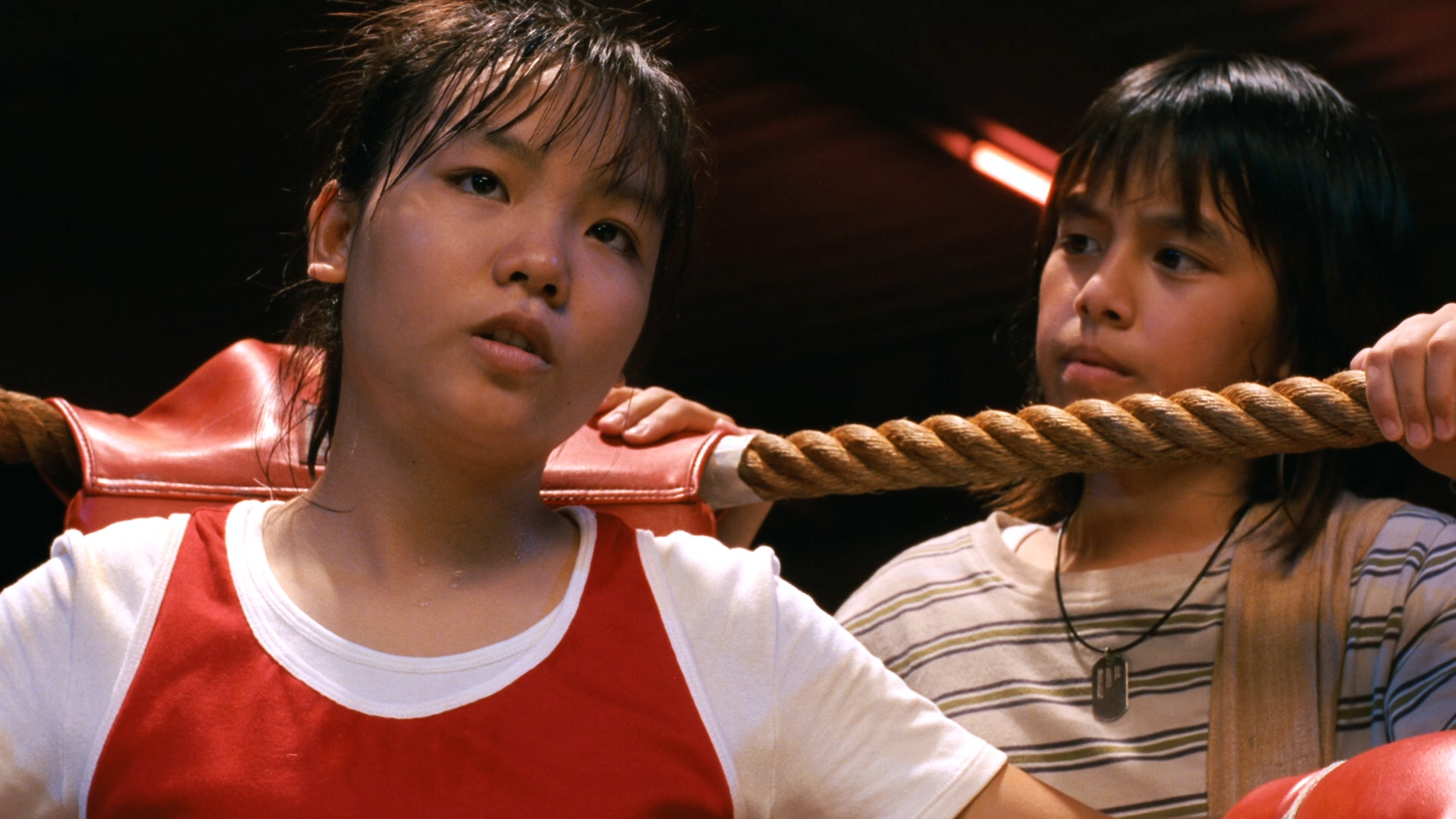 With Barney’s antics kept to a minimum, “Muay Thai Giant” works primarily with the younger characters to create a proper rumble, deploying Jindamanee’s pint-sized frame to cause some serious damage to the baddies. Working with wires and forceful choreography (including some pro wrestling maneuvers), the action set pieces are tremendously amusing, with the gang punching and kicking their way to safety, even using Jones as a personal springboard to launch themselves into the air. The film reserves plenty of time for martial art showdowns, with a personal favorite emerging in the form of a papaya stand throwdown, where Dokya fends off a gang threat using the secretive, missile-like power of the fruit to disable her attackers.