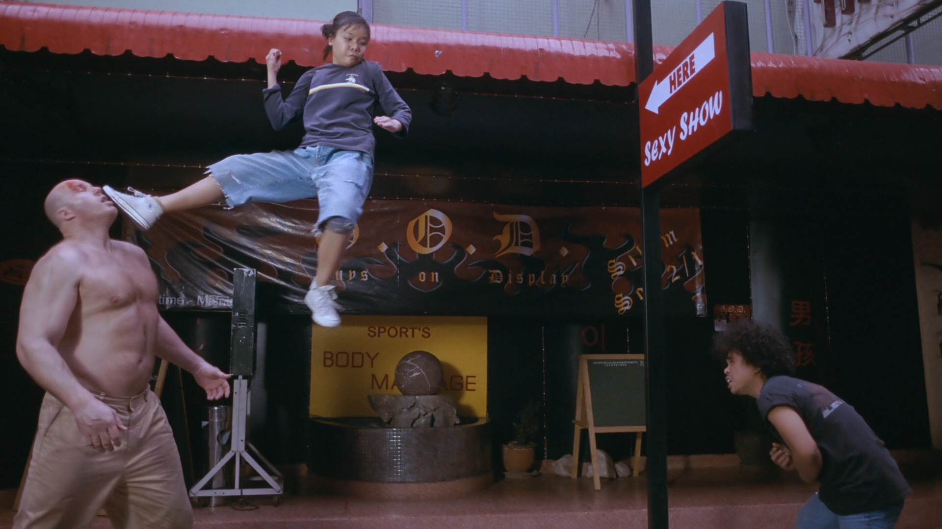 After being duped by a prostitute at a nightclub, hulking giant Barney (Nathan Jones) is left on the streets of Thailand without clothes, money, or his passport. Helping the giant sad sack out are two street kids, Dokya (Sasisa Jindamanee, a champion junior kickboxer) and Katen (Nawarat Techarattanaprasert), who bring Barney to their mother and her beachside som tam restaurant. When the big guy has a violent reaction to the spicy dish, he destroys the building, requiring the gang to figure out a plan to make money and rebuild. Already a successful Muay Thai fighter, Dokya returns to the ring to collect some easy cash, only to run into major trouble when a ring of diamond thieves lose a special key to their fortune.