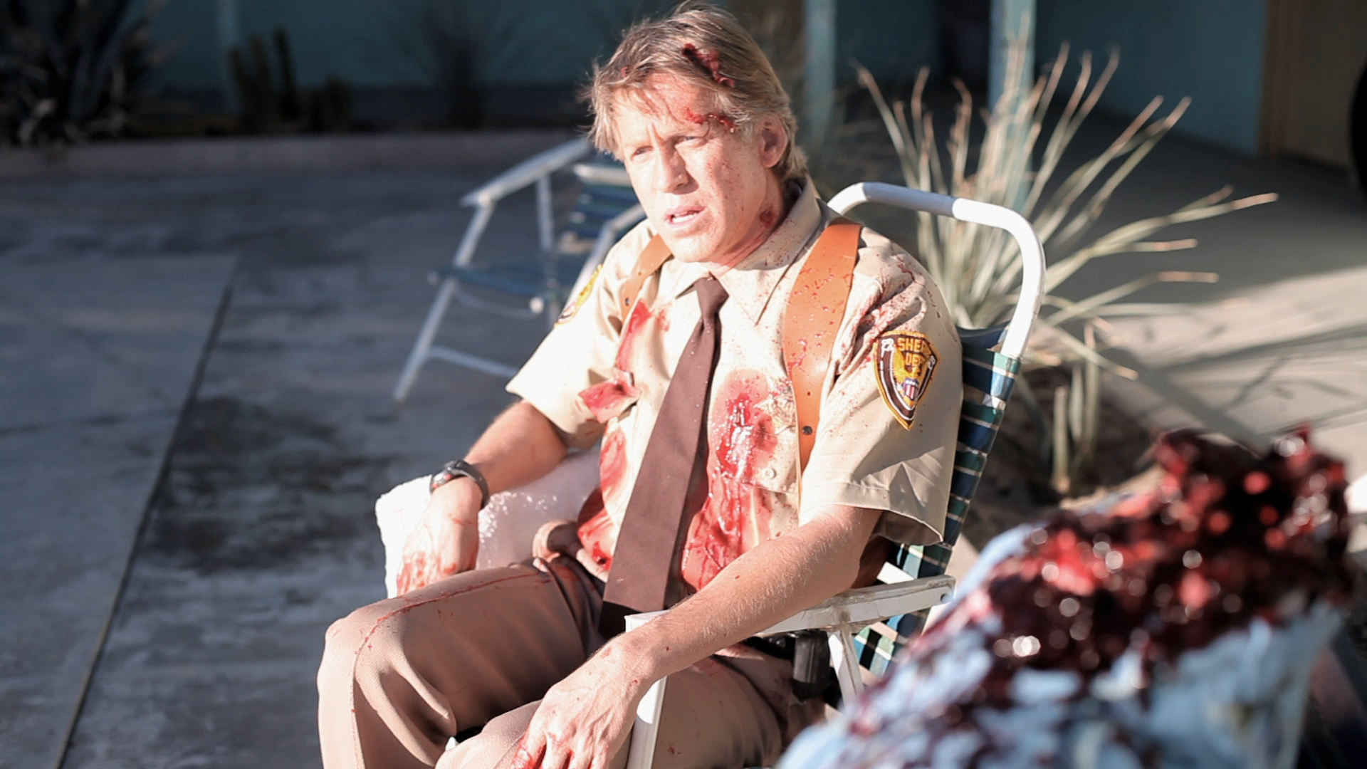 Somewhere in the desert, an audience has been assembled by a nerdy assistant (Jack Plotnick) to observe an event. Armed with binoculars, the opinionated group eagerly waits for the show to begin. Rising up from the sand is an abandoned tire, a black piece of rubber that’s achieved consciousness, soon embarking on a tour of the area, killing almost everything with its macabre mental powers. While dastardly events befall the spectators, one man in a wheelchair (Wings Hauser) refuses to stop watching the show, forcing Lieutenant Chad (Stephen Spinella) to continue his pursuit of the fugitive tire, looking to take down the serial killer with help from a French tourist (Roxane Mesquida).