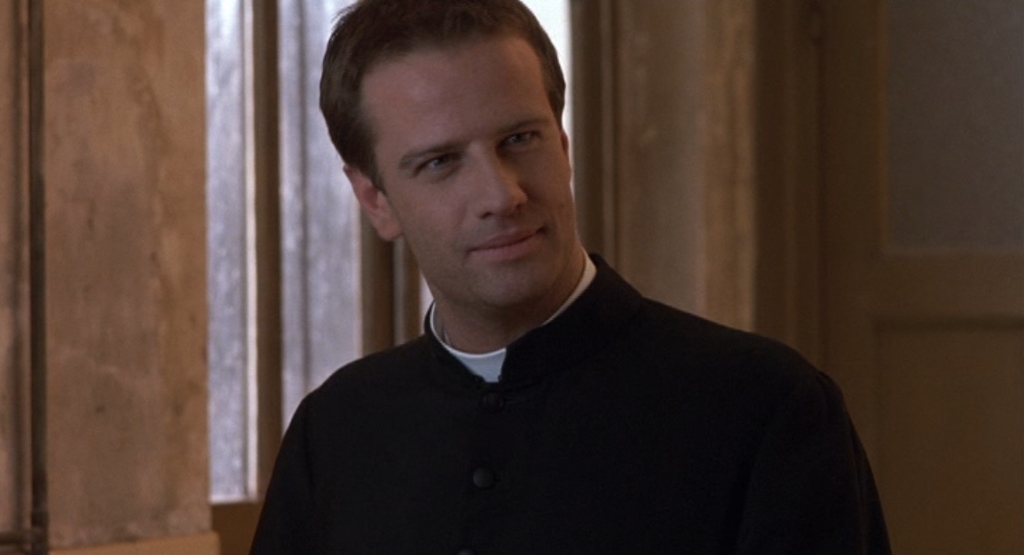 Holland creates a blistering state of aggravation for both sides of the conflict, with Stefan’s quest to silence Father Alek taking on ferociously violent and mildly comedic flashes of anger. A boiling kettle of a man, Stefan’s determination to assume a position of great respect within his country is the primary drive of the picture, following the ambitious officer as he hunts his elusive prey (with help from Tim Roth and Timothy Spall) to no avail, leading to troubles with his fearful family and domineering superiors (portrayed by Joss Ackland). Harris is monstrous, borderline animalistic in this role, tearing around the frame with an incredible manic streak. Stefan is a driven man but lacks a great deal of self-control, permitting Harris to veer wildly from euphoria to anguish (often in the same breath), generating a flamboyant but necessary characterization of an eternally desperate man. Lambert has a softer role, and while there are limitations to his range, the political and private passions of Father Alek are never doubted.