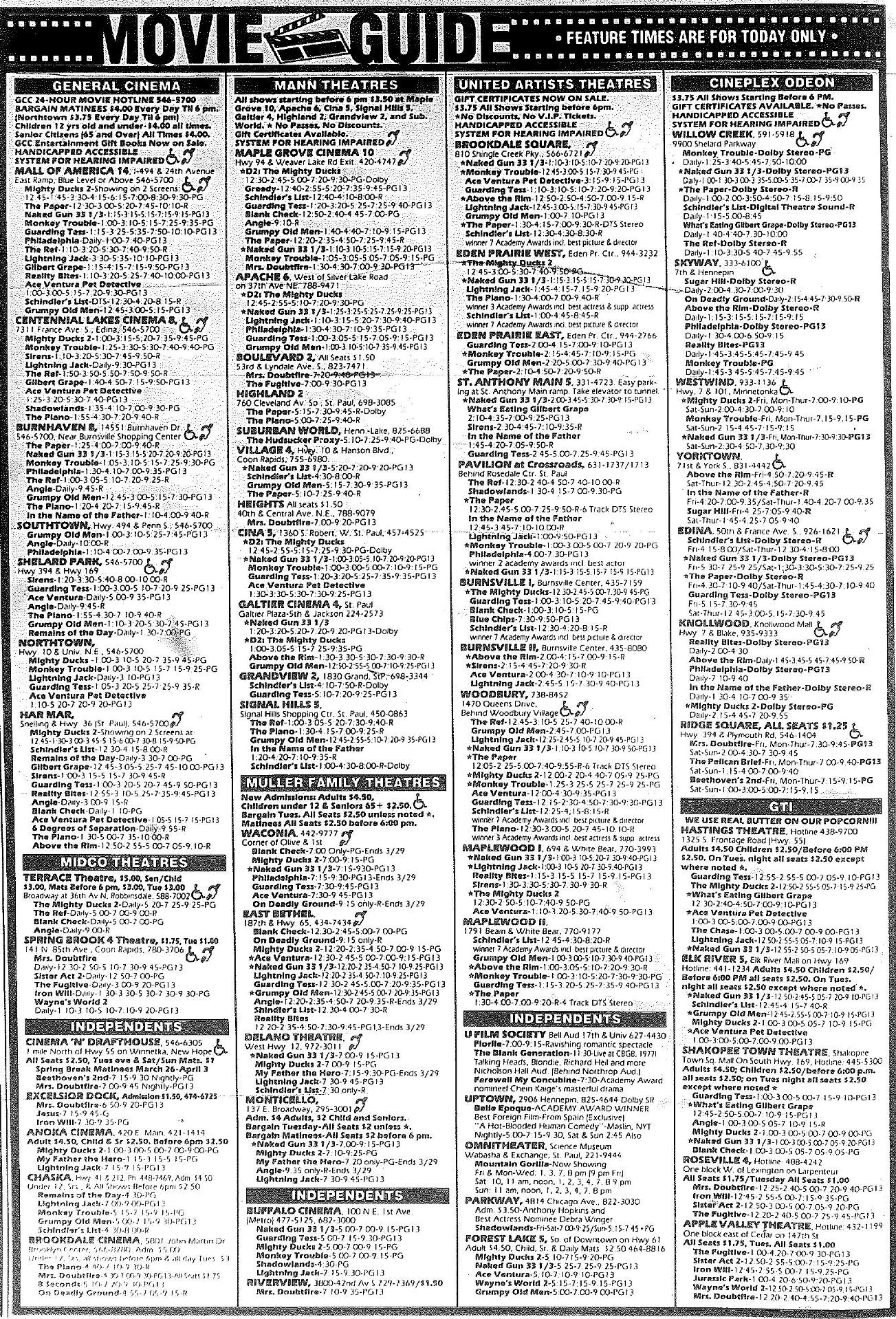 Minnesota Movie Ads – March 1994