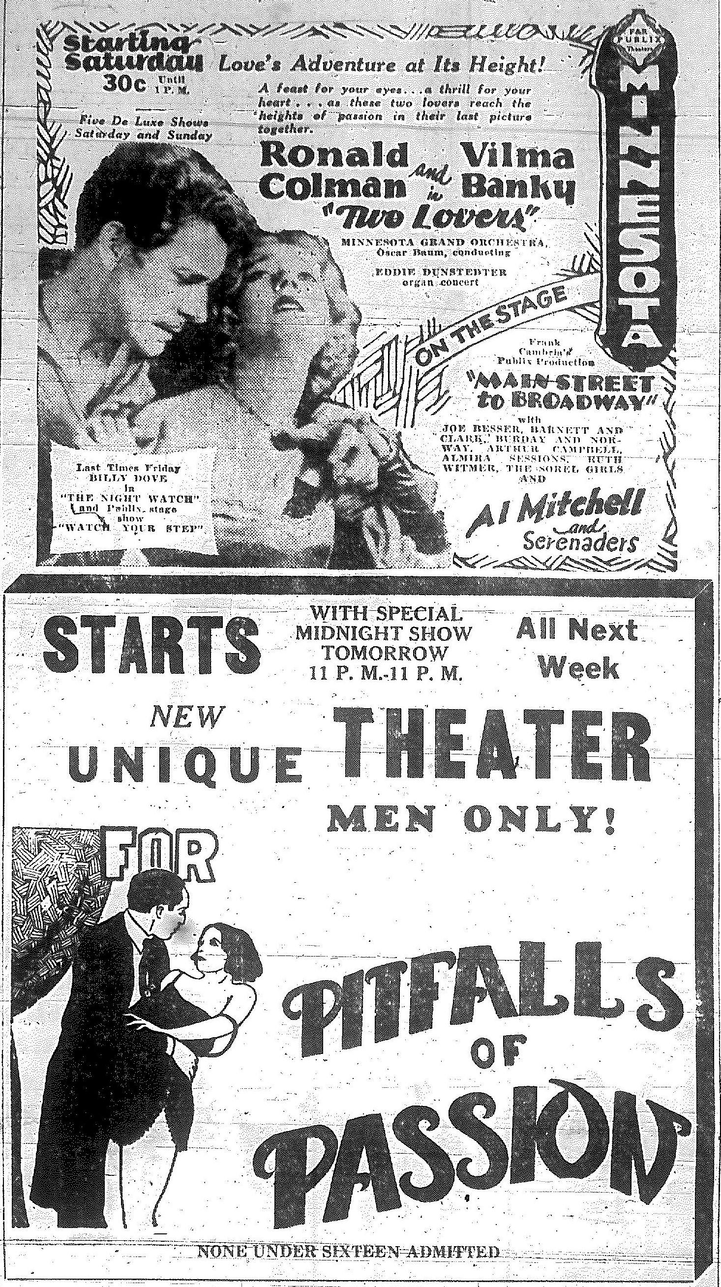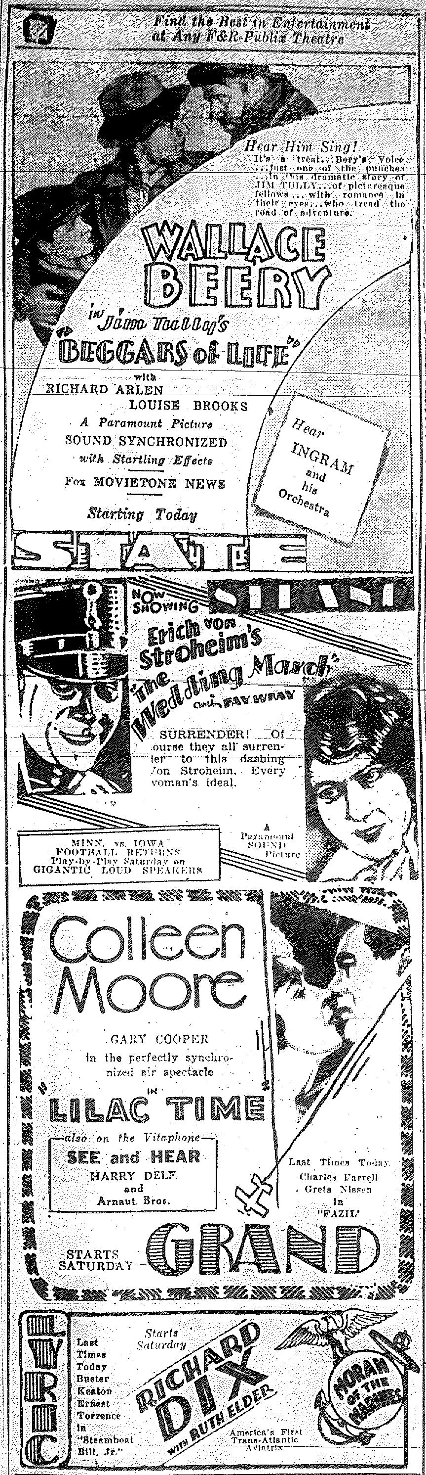 Minnesota Movie Ads – October 1928