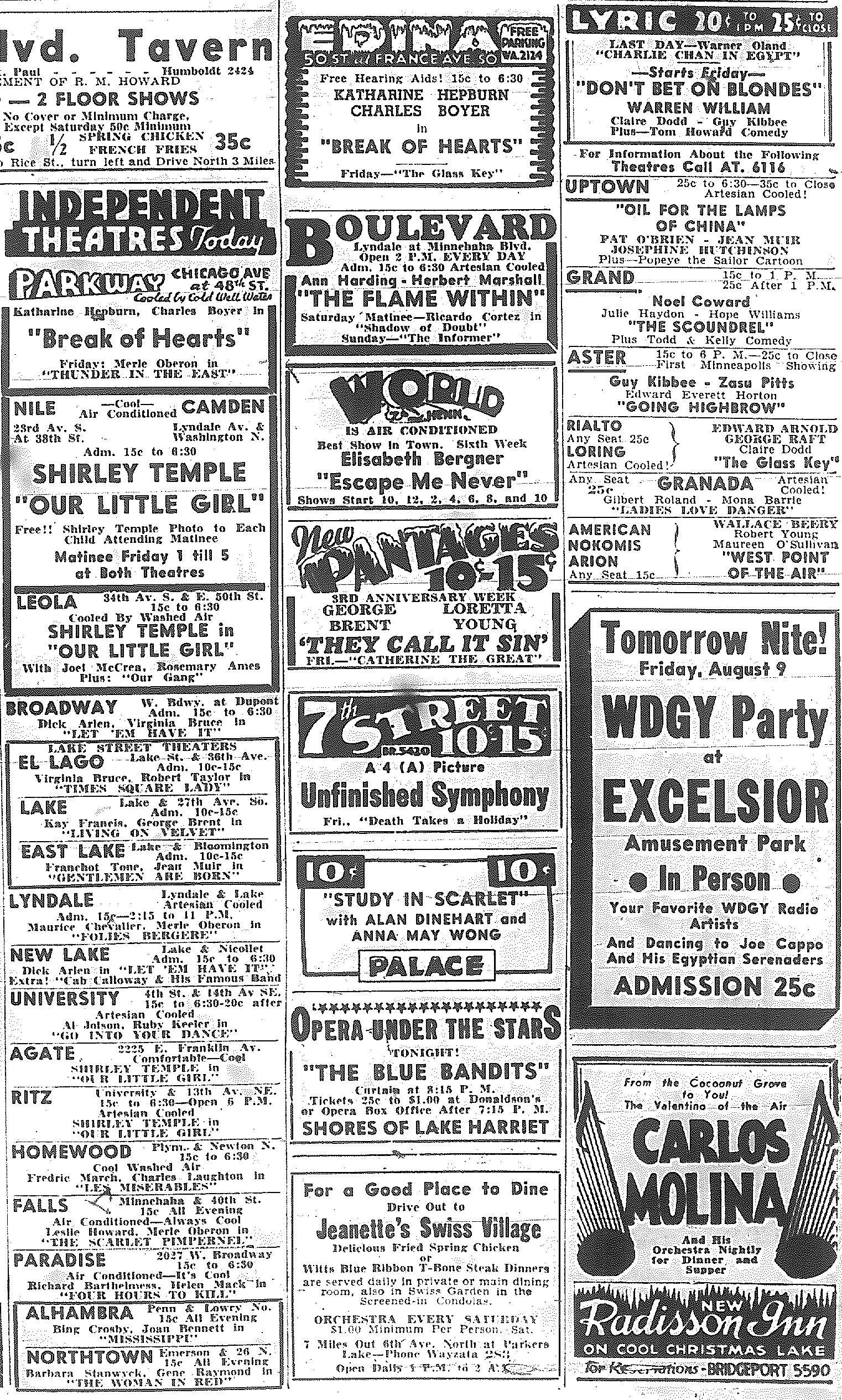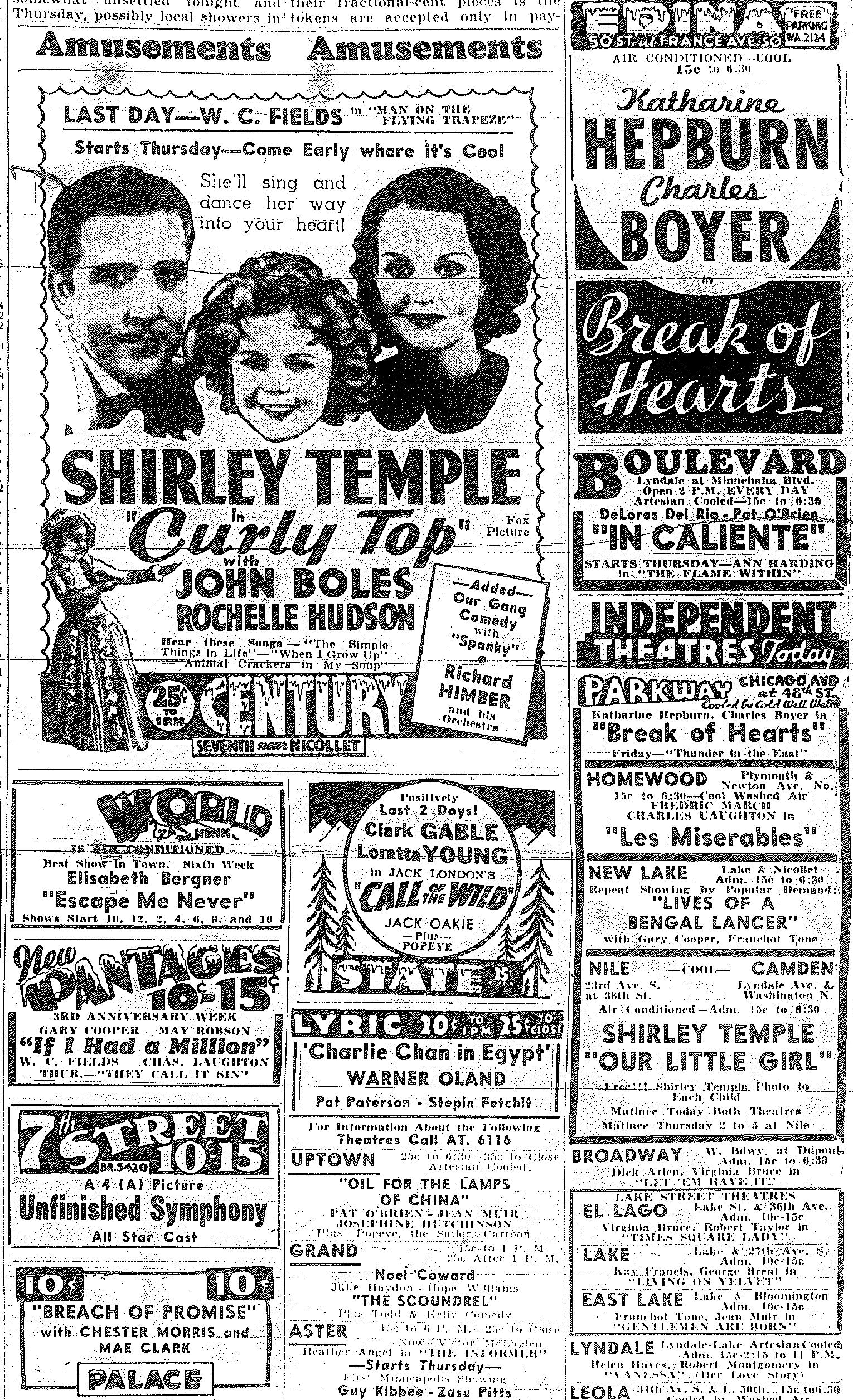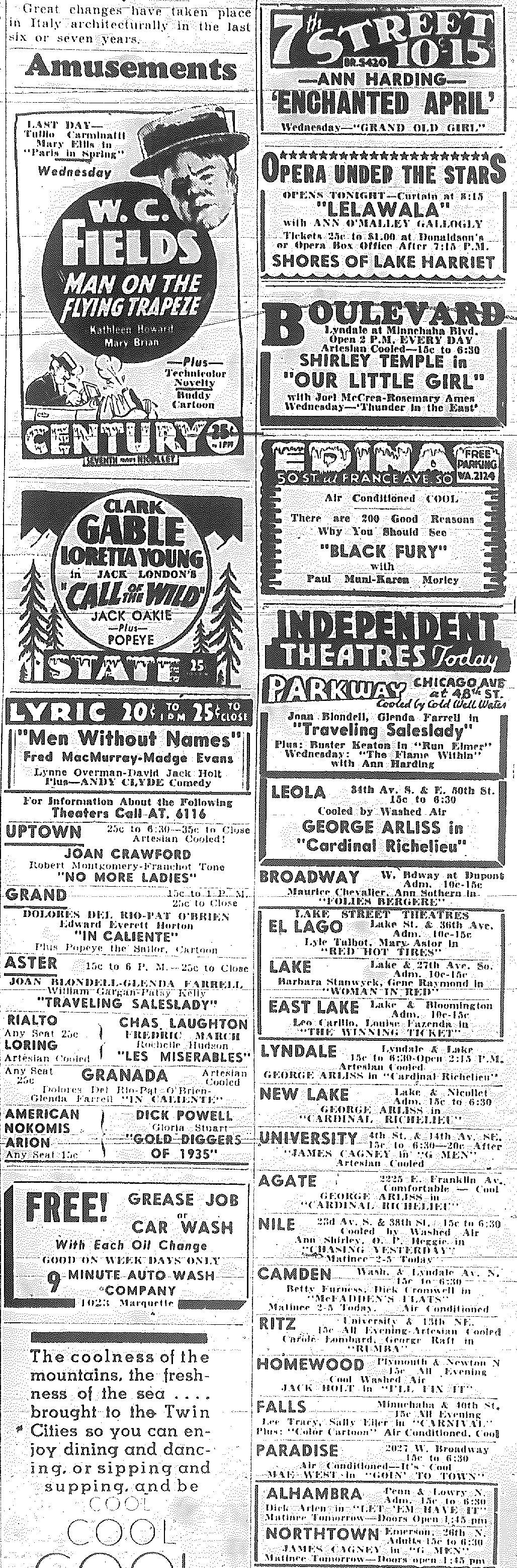 Minnesota Movie Ads – July 1935