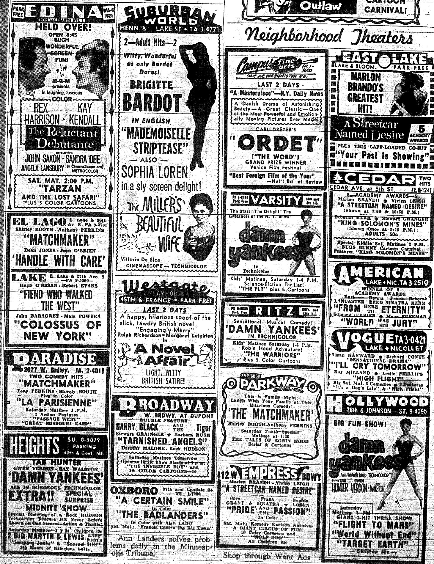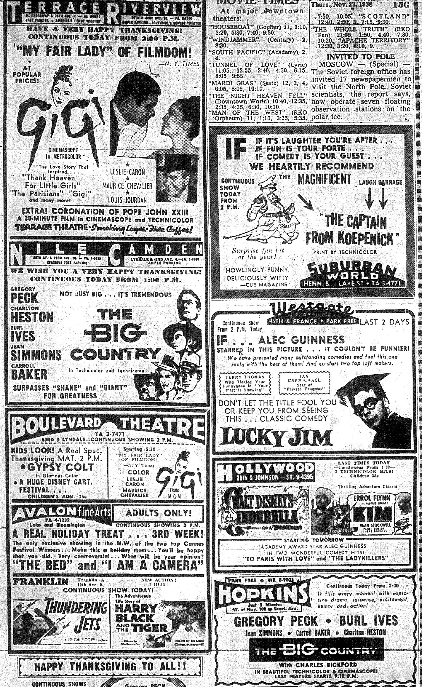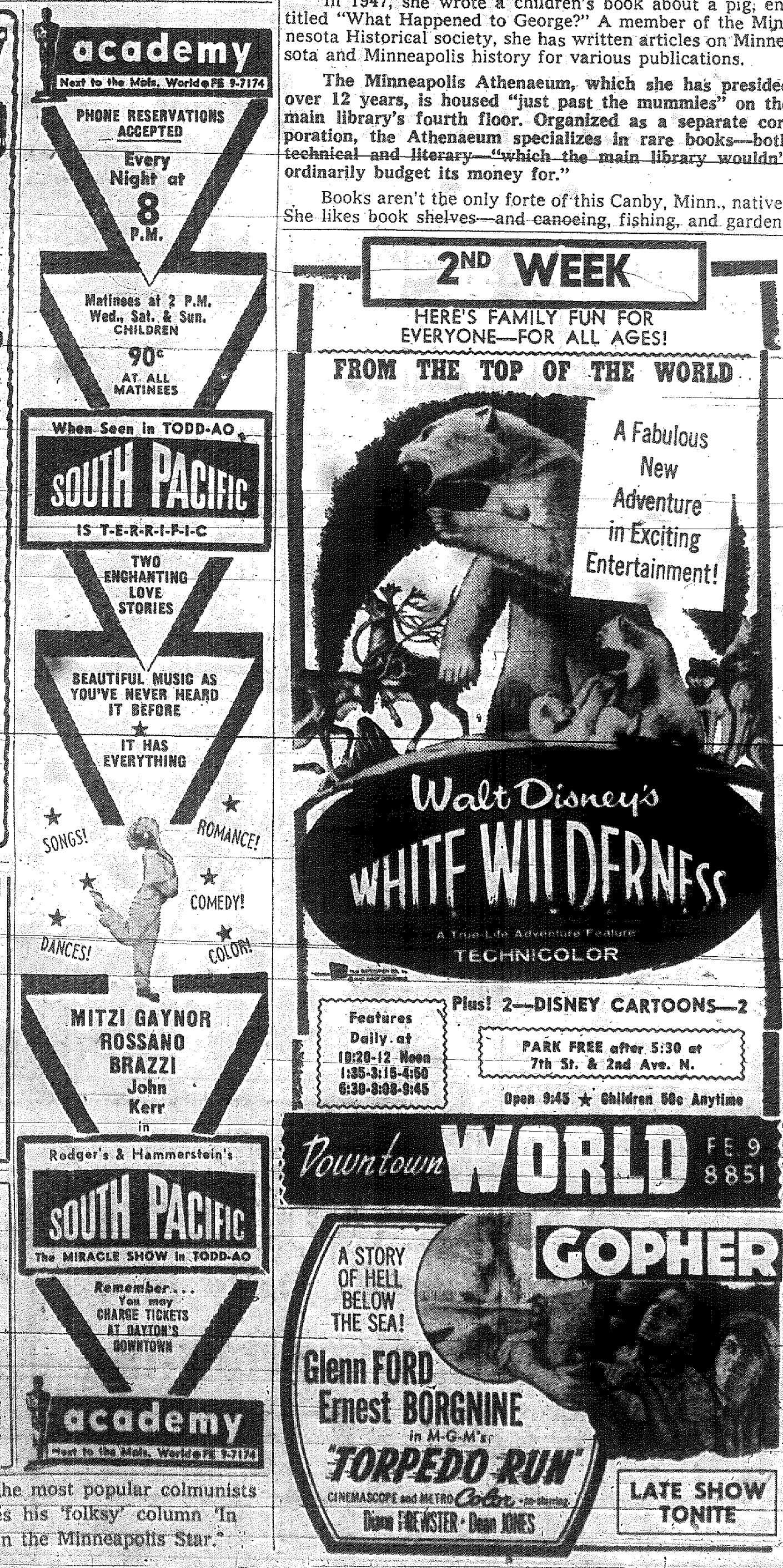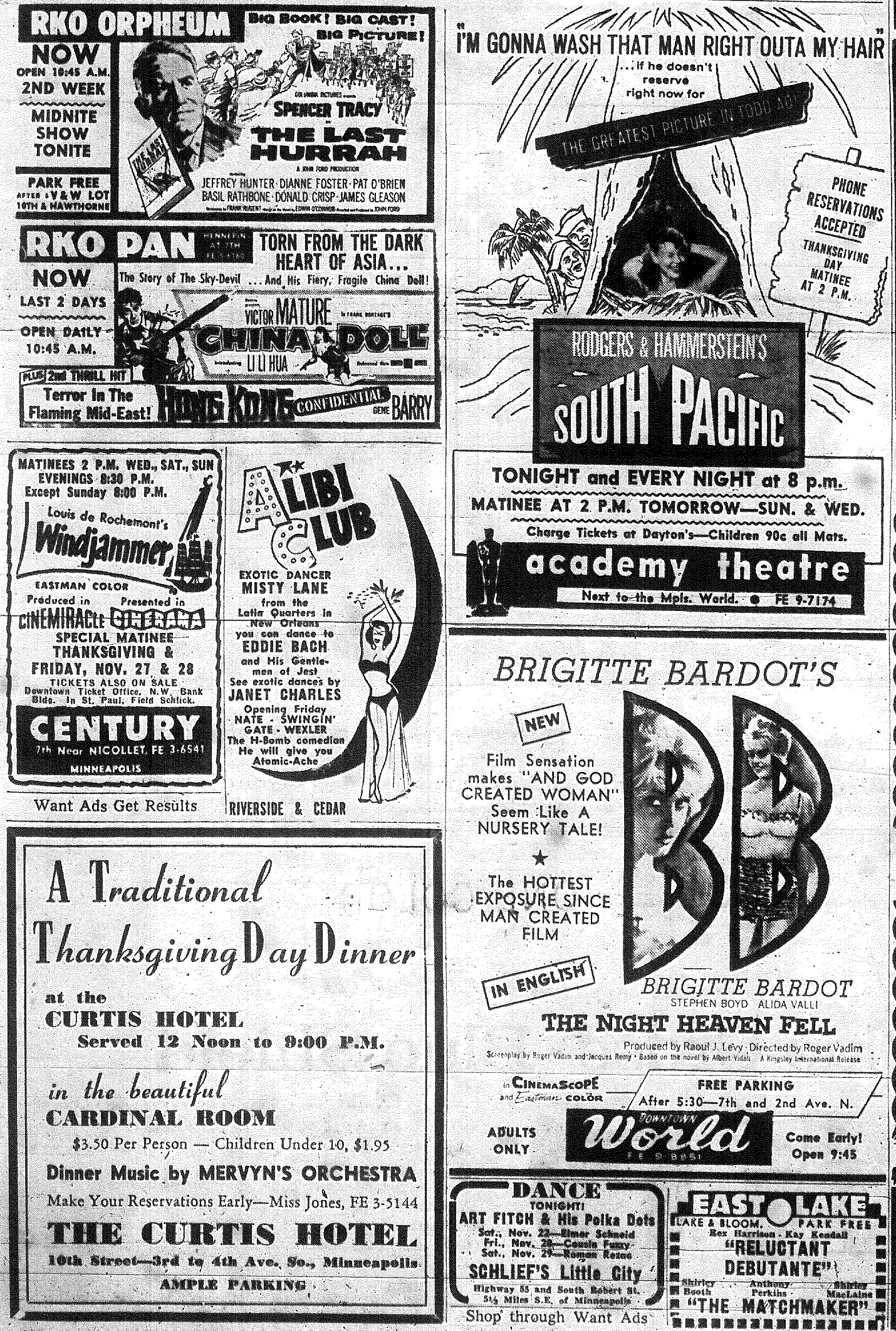 Minnesota Movie Ads – November 1958