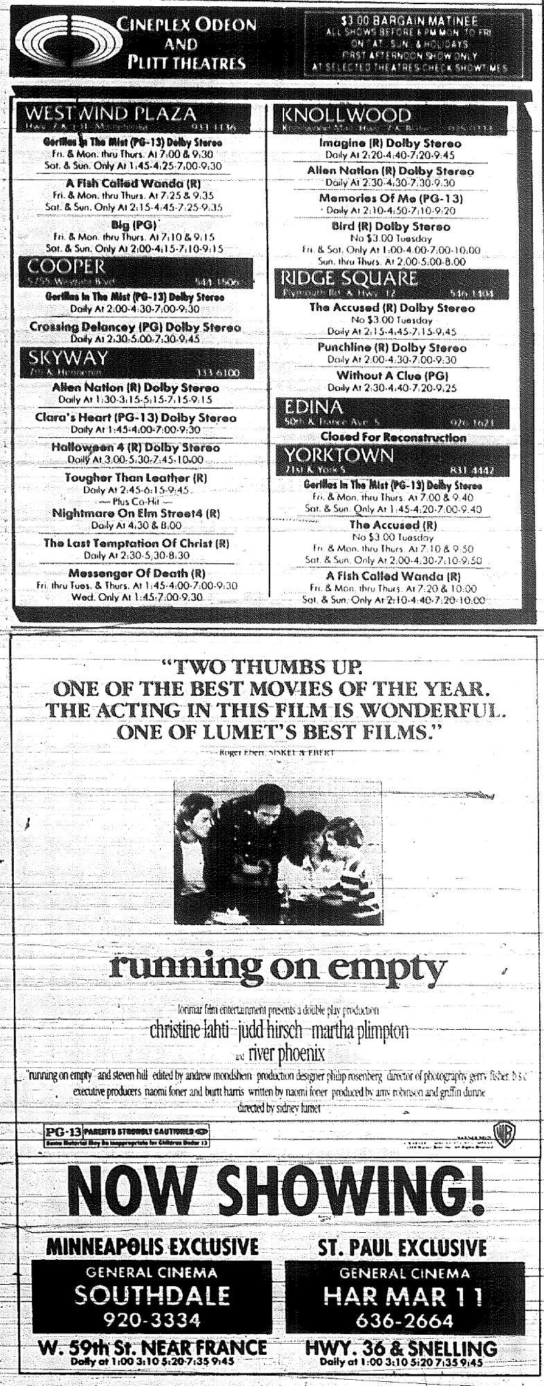 Minnesota Movie Ads – October 1988