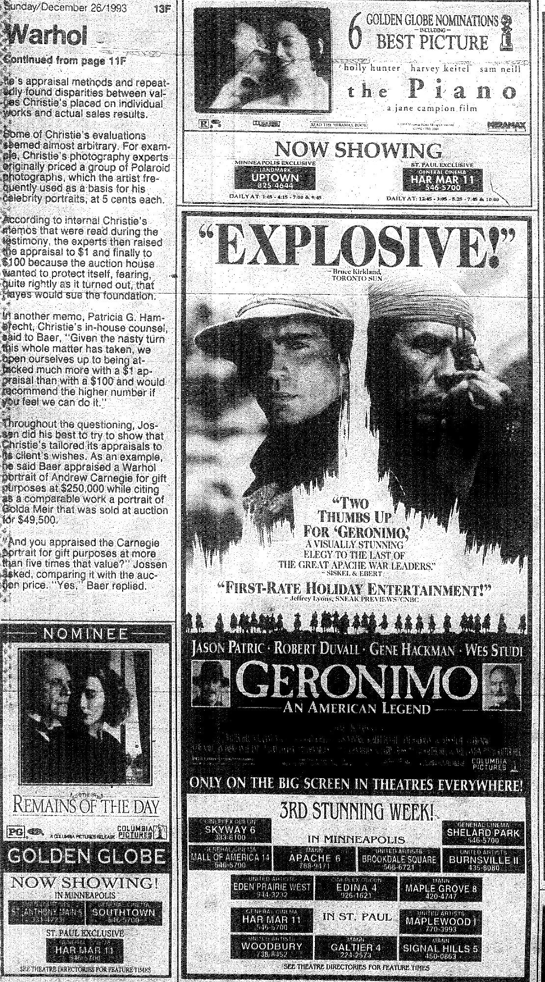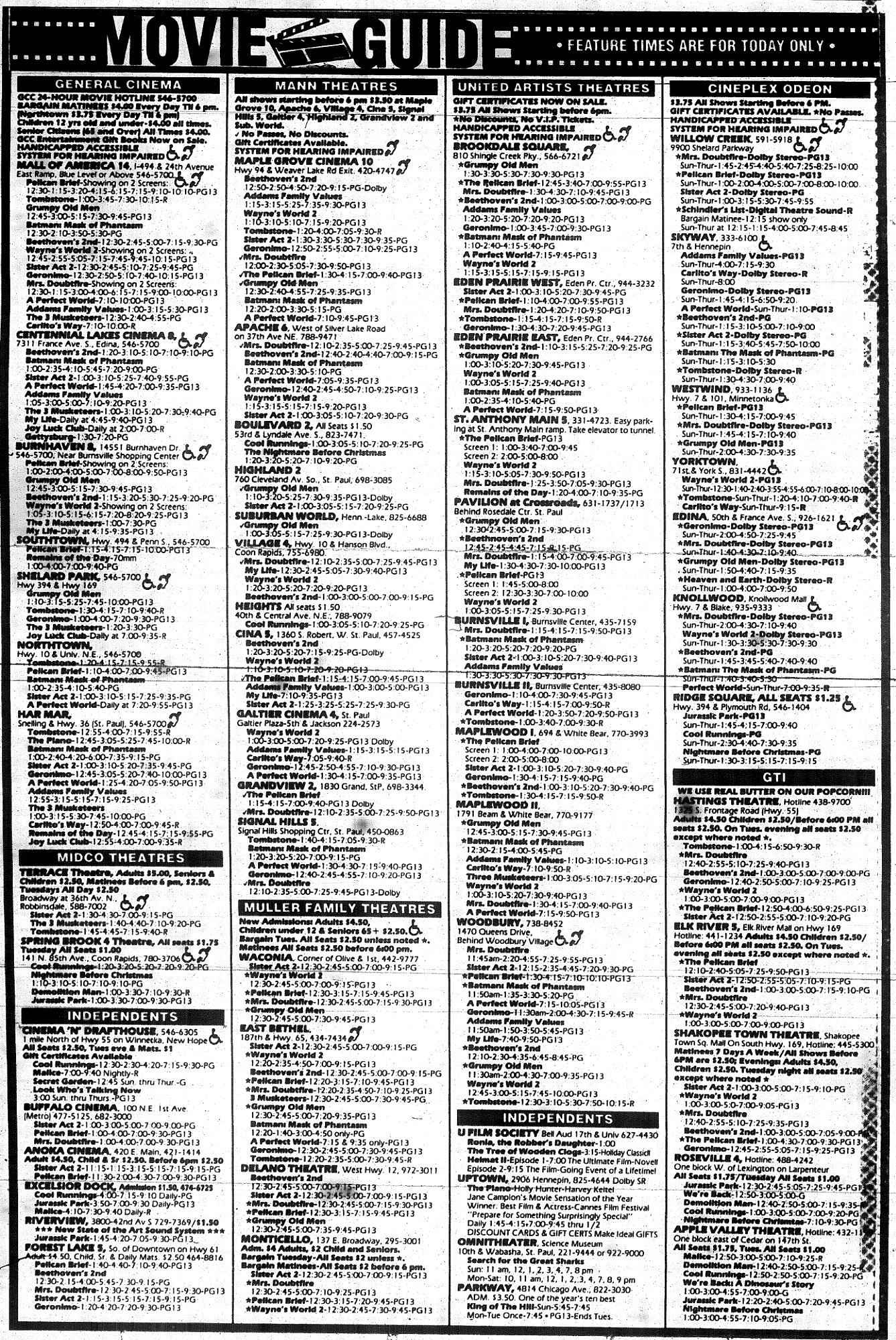 Minnesota Movie Ads – December 1993