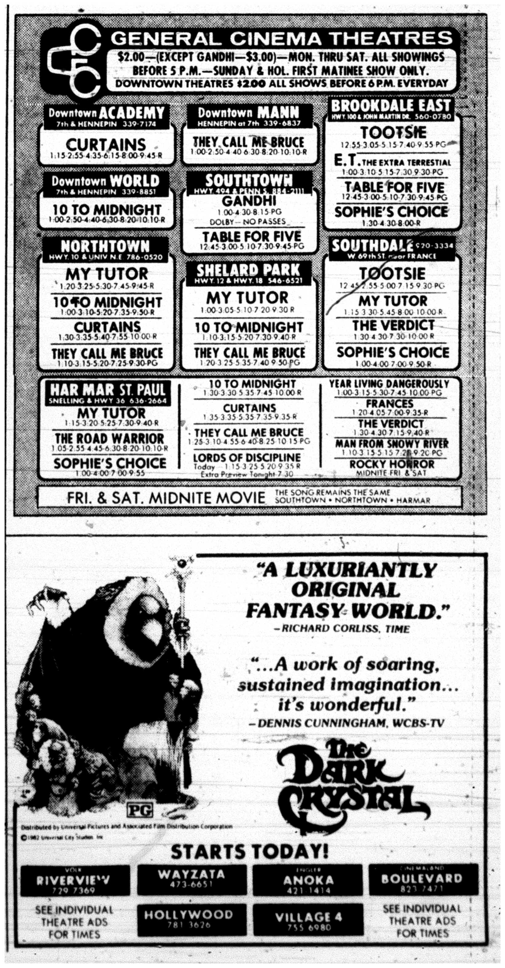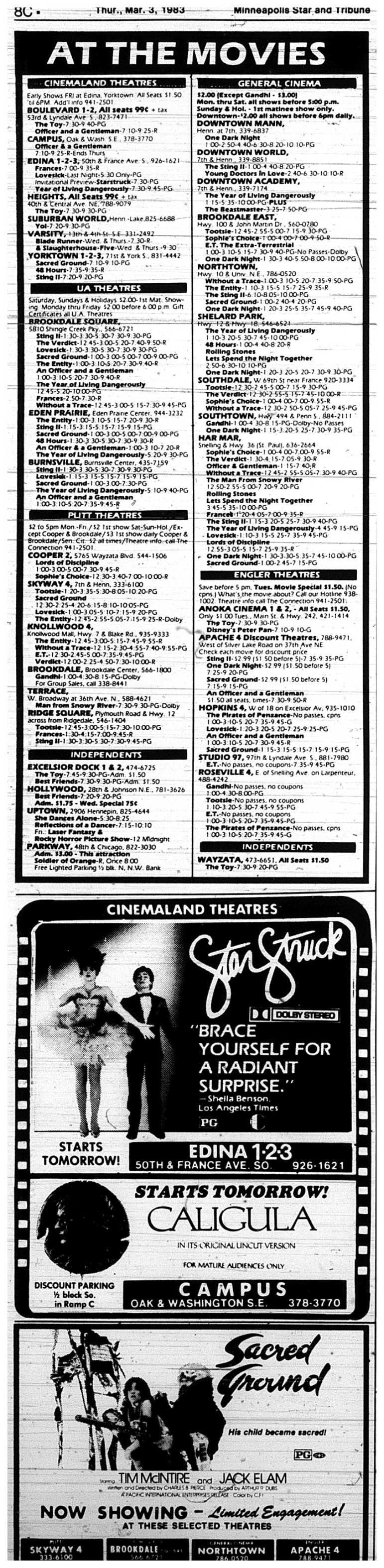 Minnesota Movie Ads – March 1983