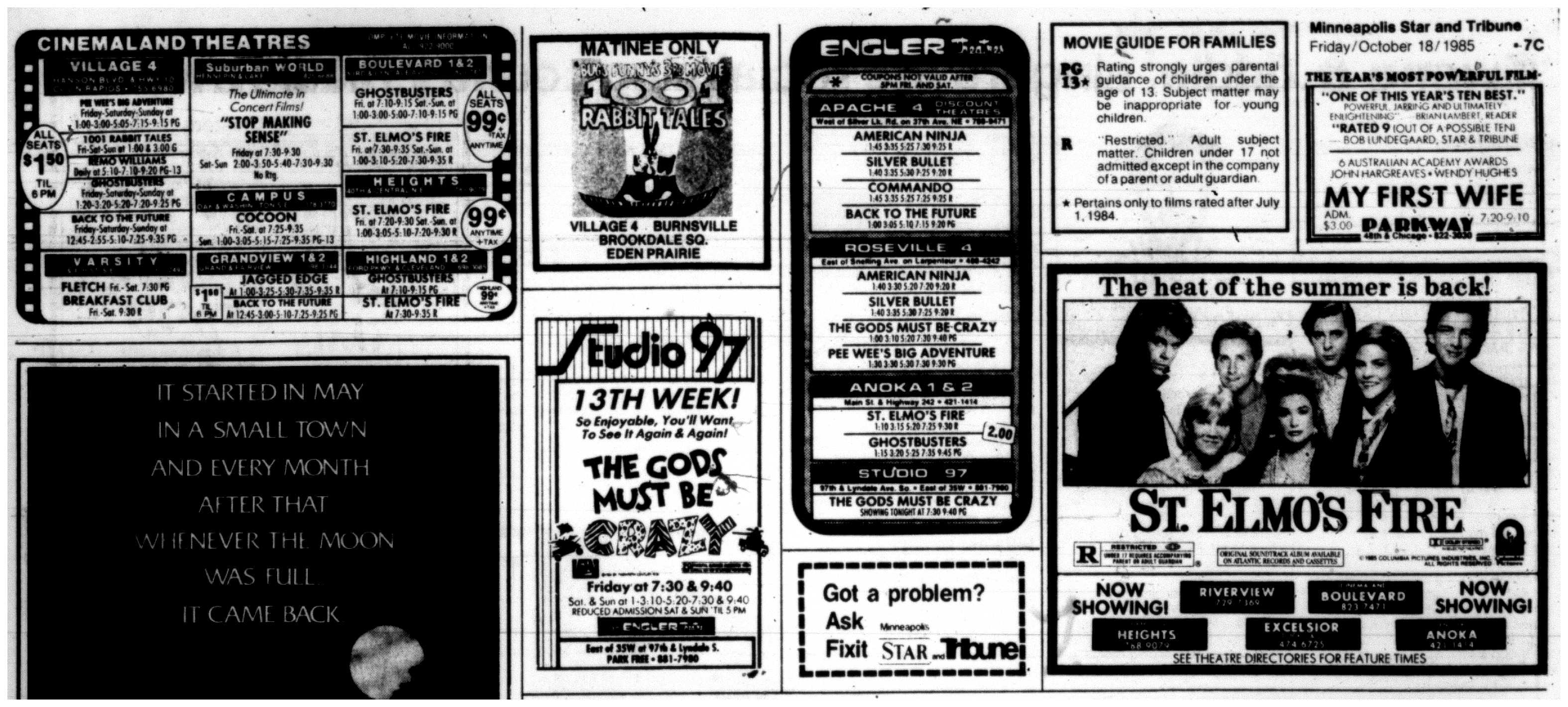 Minnesota Movie Ads – October 1985