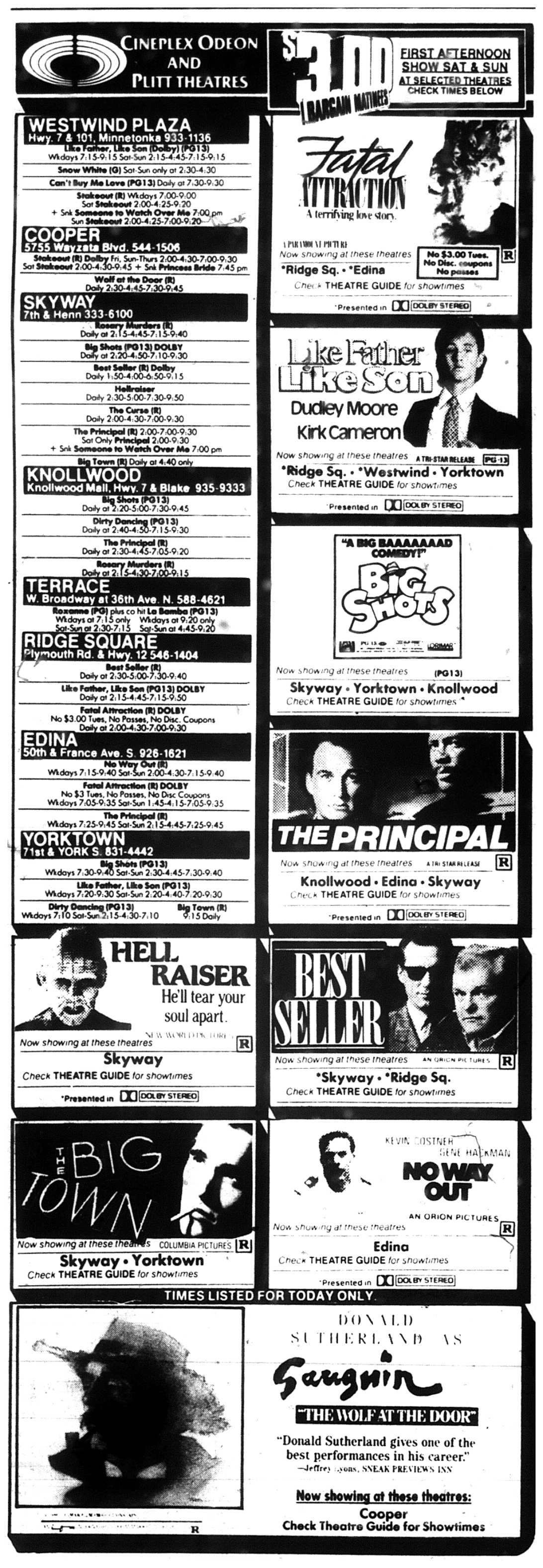 Minnesota Movie Ads – October 1987