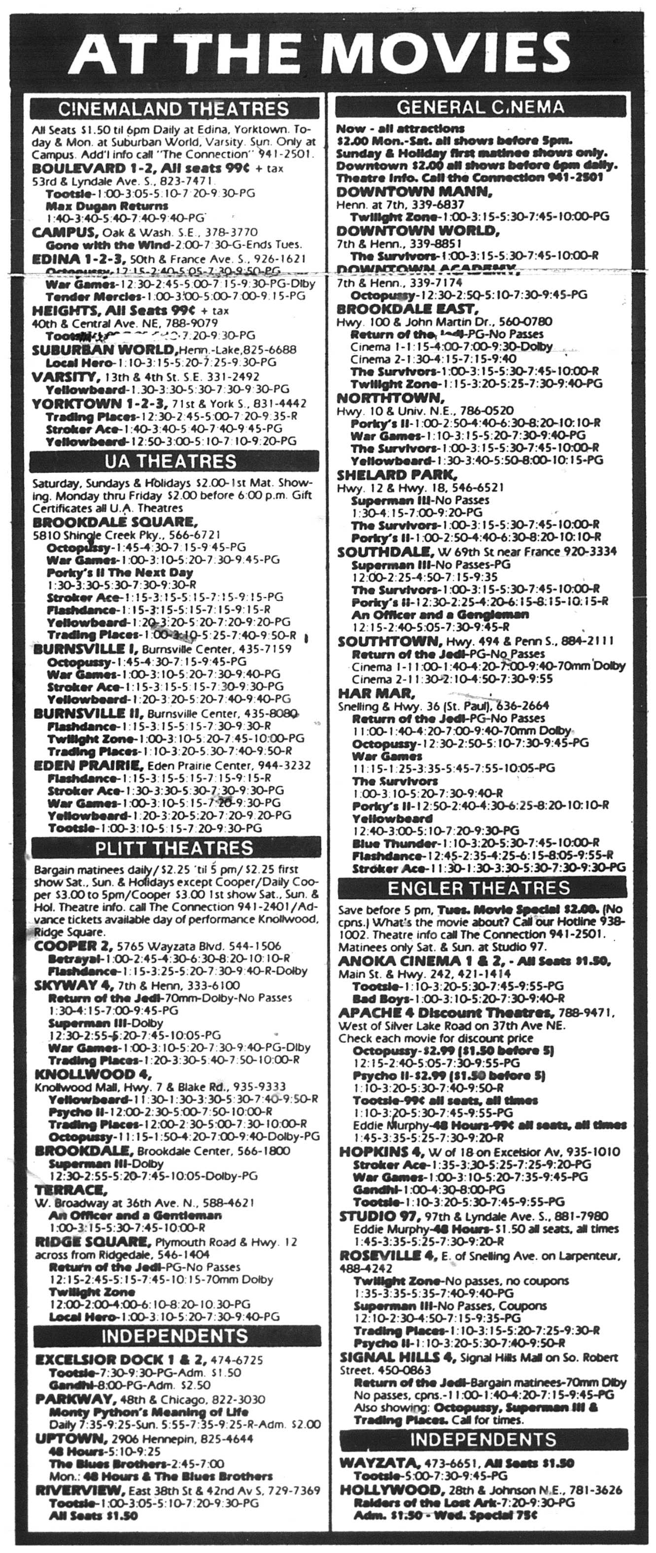 Minnesota Movie Ads – July 1983
