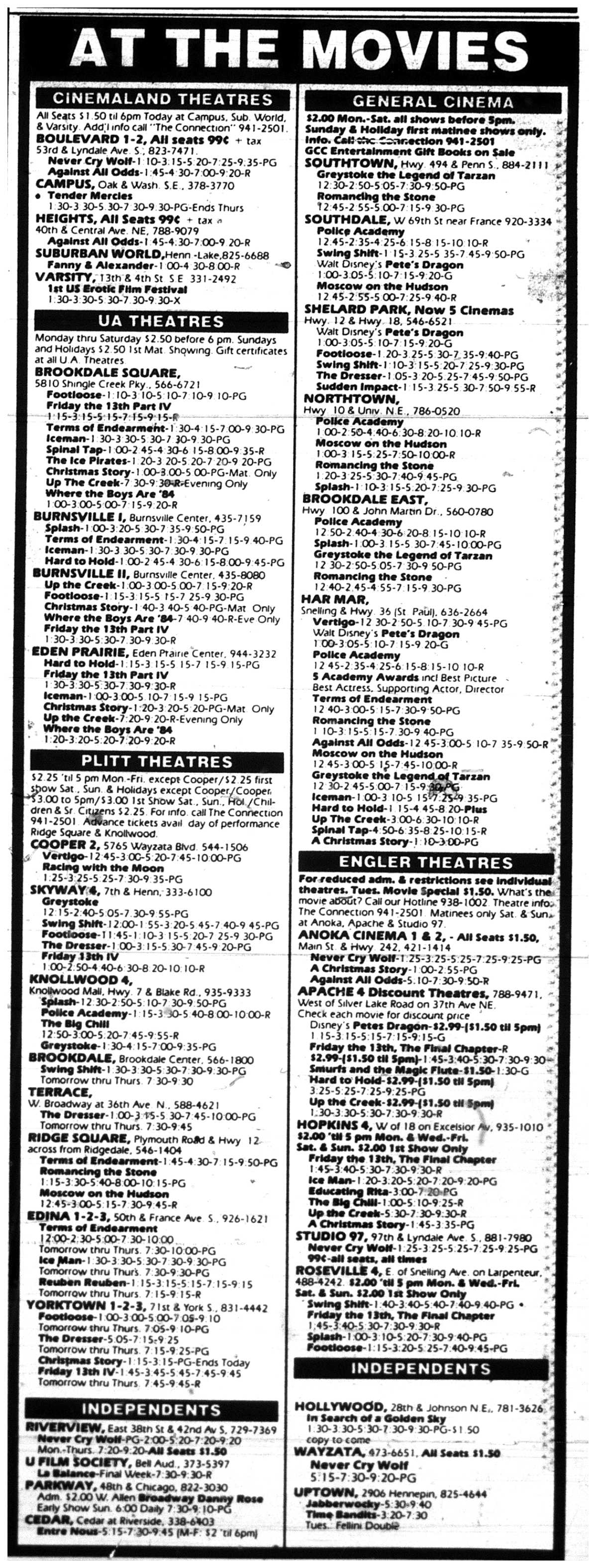 Minnesota Movie Ads – April 1984
