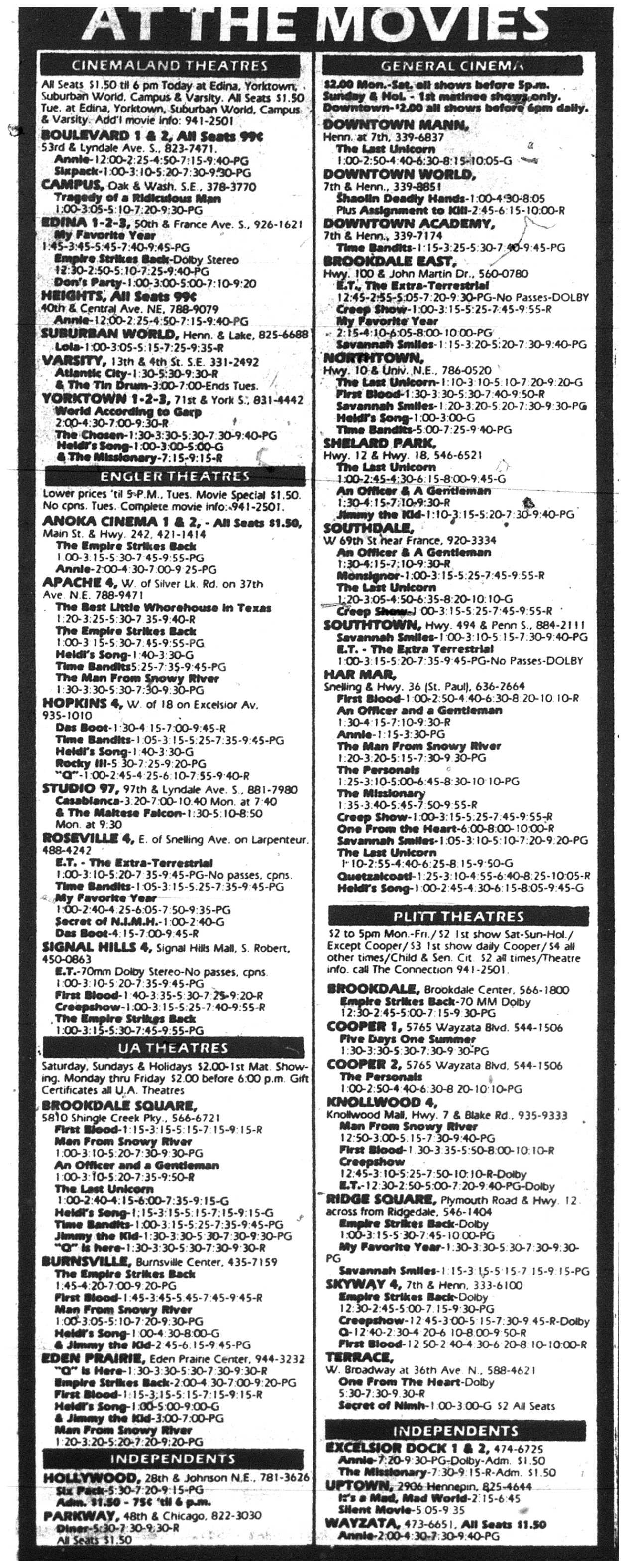 Minnesota Movie Ads – November 1982