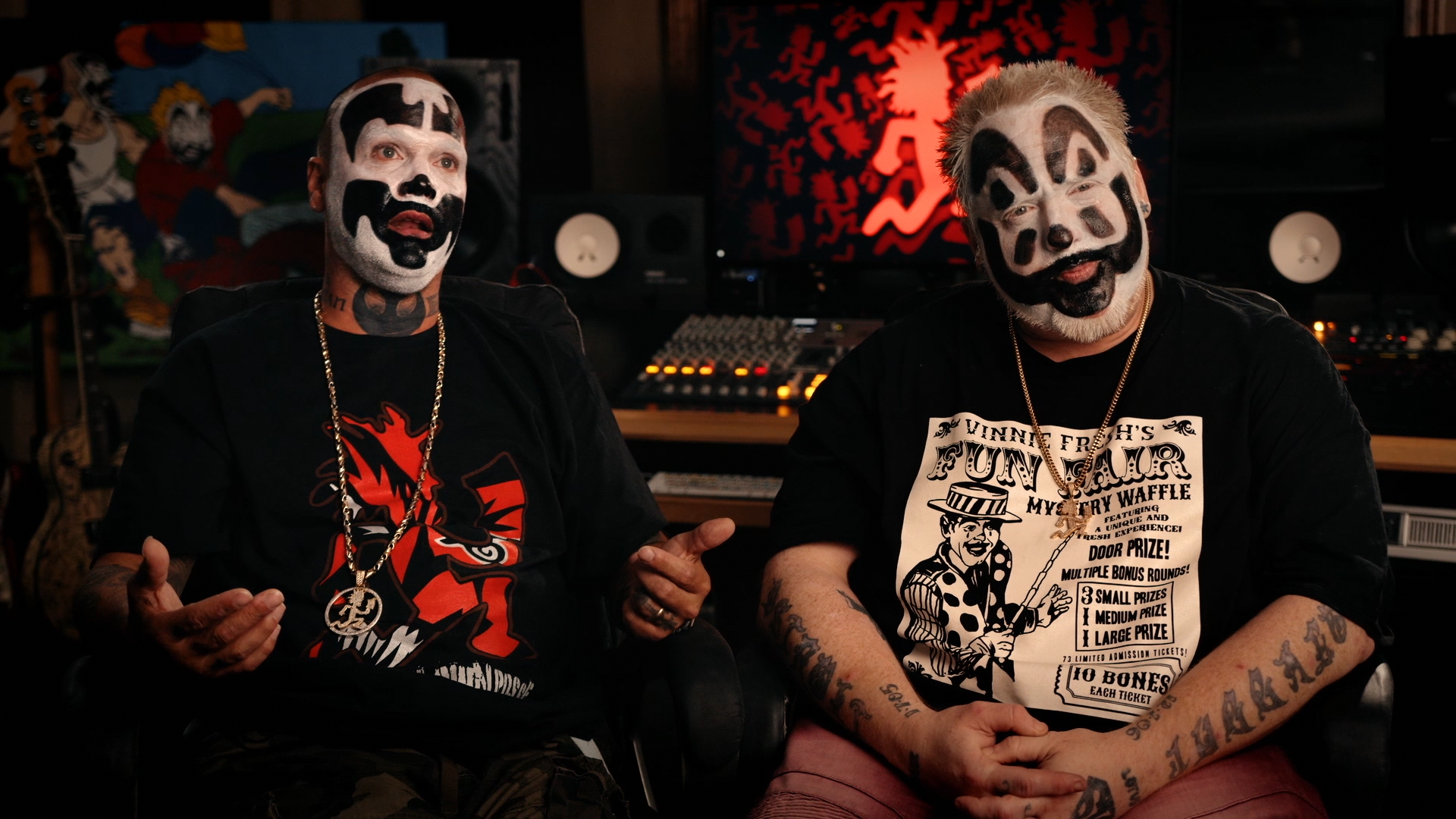 Insane Clown Posse. For outsiders, there are only a few things known about the rap group. They wear clown makeup everywhere they go, there's some type of obsession with a Detroit soda brand Faygo, and they have no idea how magnets work. 2021's "The United States of Insanity" isn't out to provide an extensive understanding of Insane Clown Posse and their inner workings, with directors Tom Putnam and Brenna Sanchez focusing on their legal entanglements. The documentary follows their fight to pull the fan nickname "Juggalo" off the FBI's list of dangerous gangs, with members Violent J and Shaggy 2 Dope going apoplectic as they confront a serious challenge to their first amendment rights. "The United States of Insanity" explores the Juggalo way, identifying the very real people hurt by this designation, with many simply out to enjoy the horrorcore hip-hop group and the loyal community that's been created to celebrate all things Insane Clown Posse.