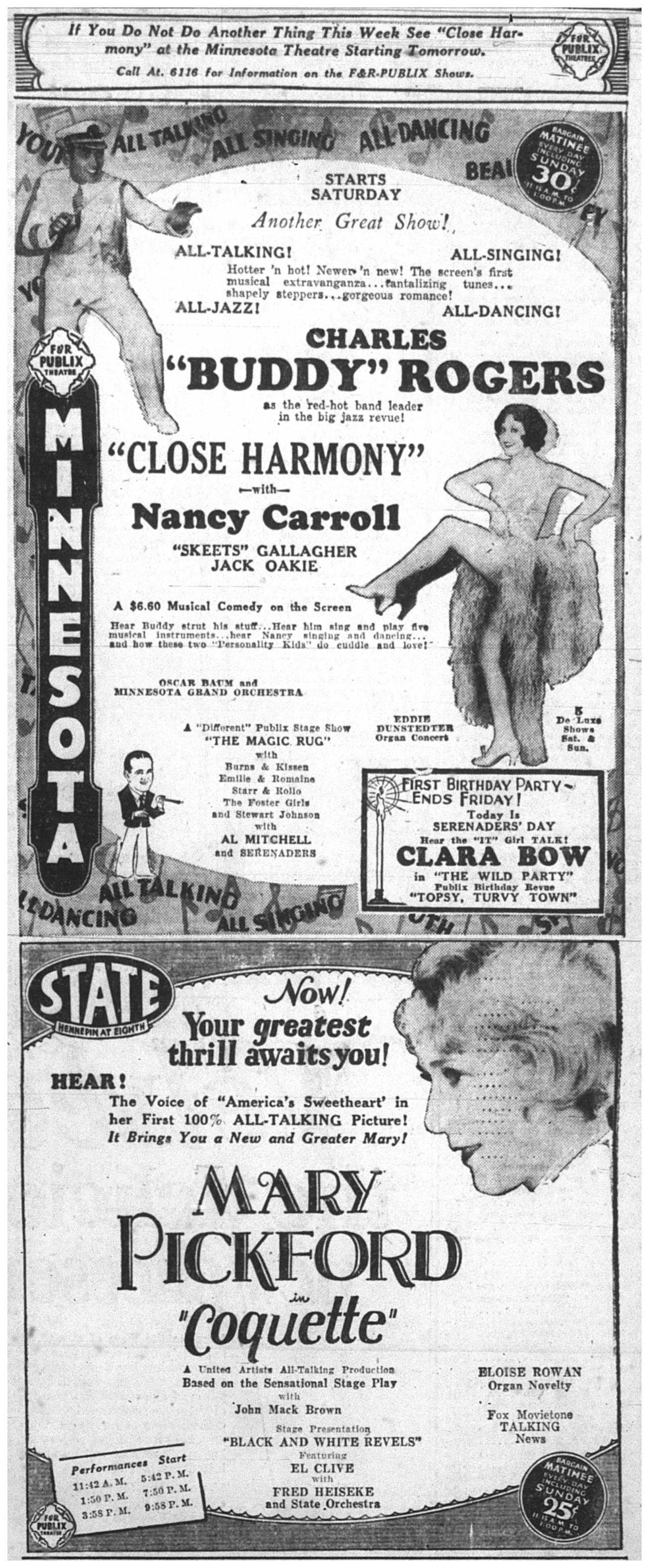 Minnesota Movie Ads – April 1929